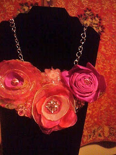 I just made this "bib" necklace using the Bigz Shot and the #2 Circle Die. Please, excuse the photo (I used the cell phone). I used two types of fabrics: organza and satin. I used a lighter to melt the edges of my circle in order to prevent fraying. It is important to use synthetic fabrics and not natural fabric (natural fabric tends to burn). I also keep a big bowl of water around when I am working with the lighter, just in case my fabric catches on fire. Finally, I had some jewelry from the 90s that I re purposed it by adding it to this necklace. You could attach the "bib" part of the necklace to pearls, beaded necklace, and or even a ribbon. I chose to attach it to a chain to contrast the dainty and feminine with bold links and masculine. It was super easy...the melting of the edges; however, takes some time and patience. You could also make hair accessories, bracelets, rings, paper crafting, etc... using the Bigz Shot and #2 Circle Die. The PAWS-ibilities are endless. If you are interested in learning more about the Bigz Shot, visit my on line store.